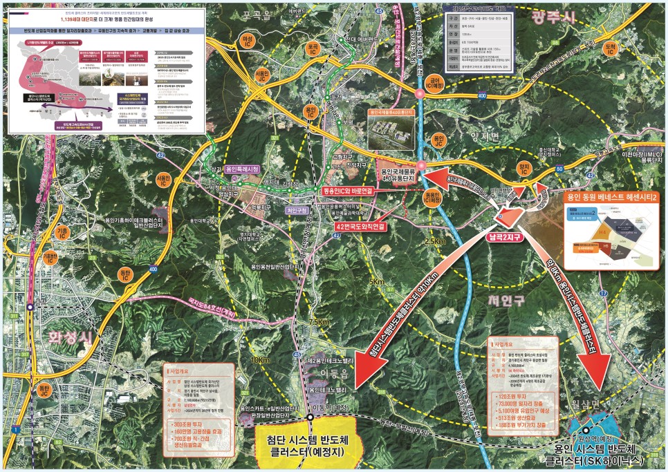 SK하이닉스의 원삼면 '용인반도체클러스터 일반산업단지'에 이어 삼성전자의 '첨단 시스템반도체 국가산업단지', 반도체 배후신도시인 '이동 공공주택지구' 계획까지 나온데다 정부가 이를 뒷받침할 대규모 교통 인프라 구축 의지를 밝혔기 때문이다.