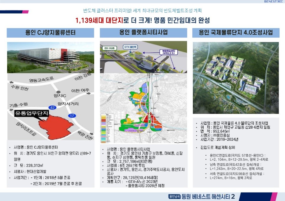 용인남곡 동원 베네스트 헤센시티2가 들어서는 용인 처인구에는 세계 최대 규모 반도체클러스터와 각종 산업단지가 조성될 예정이며, 인근 기흥구 일대에는 플랫폼시티사업도 추진 중으로 높은 미래가치를 누릴 수 있다.